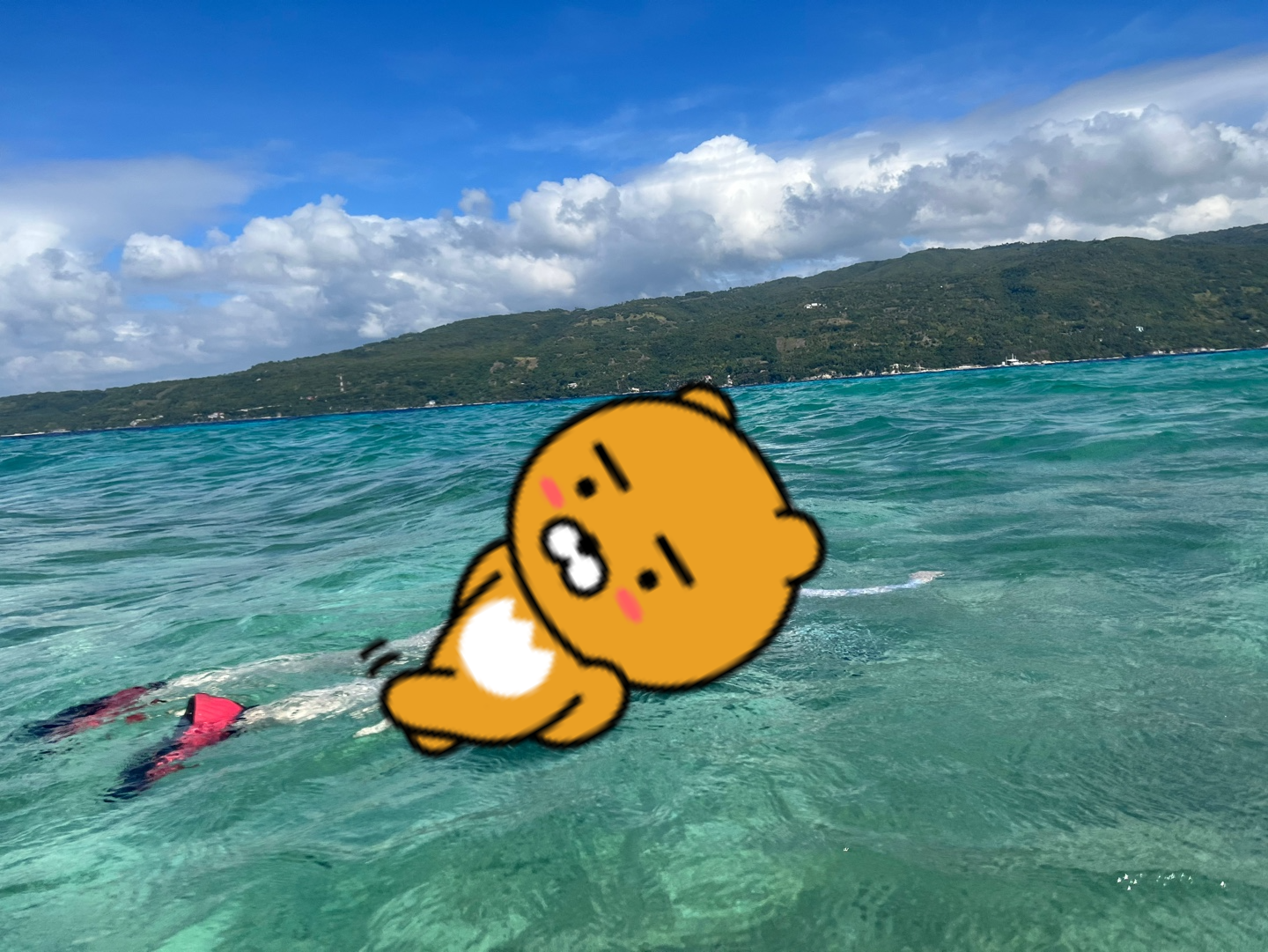 다리에 고래상어 꼬리가 닿일 거 같아서 동영상 촬영하다가 한번 수면 위로 올라왔어여ㅋㅋㅋㅋㅋ